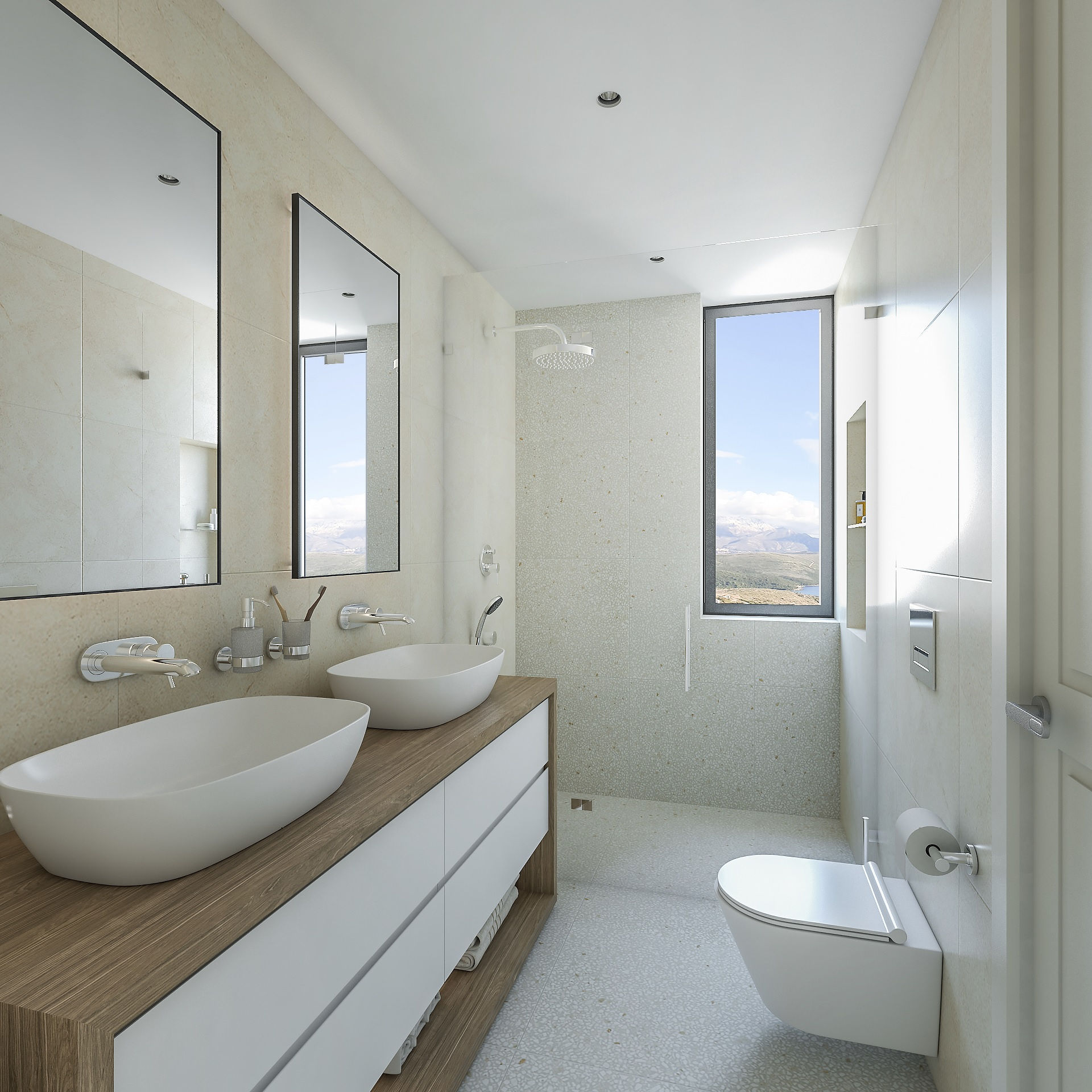 - Hansgrohe (or similar) bathroom fittings and accessories in chrome finish